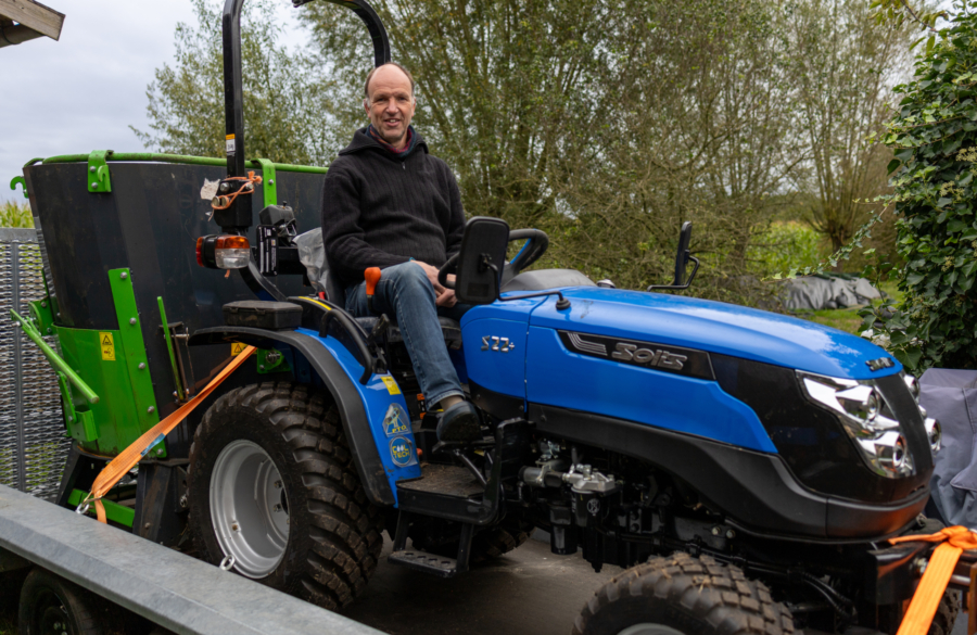 Na meerdere prototypes kwam de doorbraak: een robuuste voermengmachine werd aangepast met een weegsysteem en een noodstopknop. Dankzij de aansluiting op een mini-tractor (zoals de Solis S22) kan Bert zelfstandig werken en eenvoudig verplaatst worden, precies waar je hem nodig hebt.